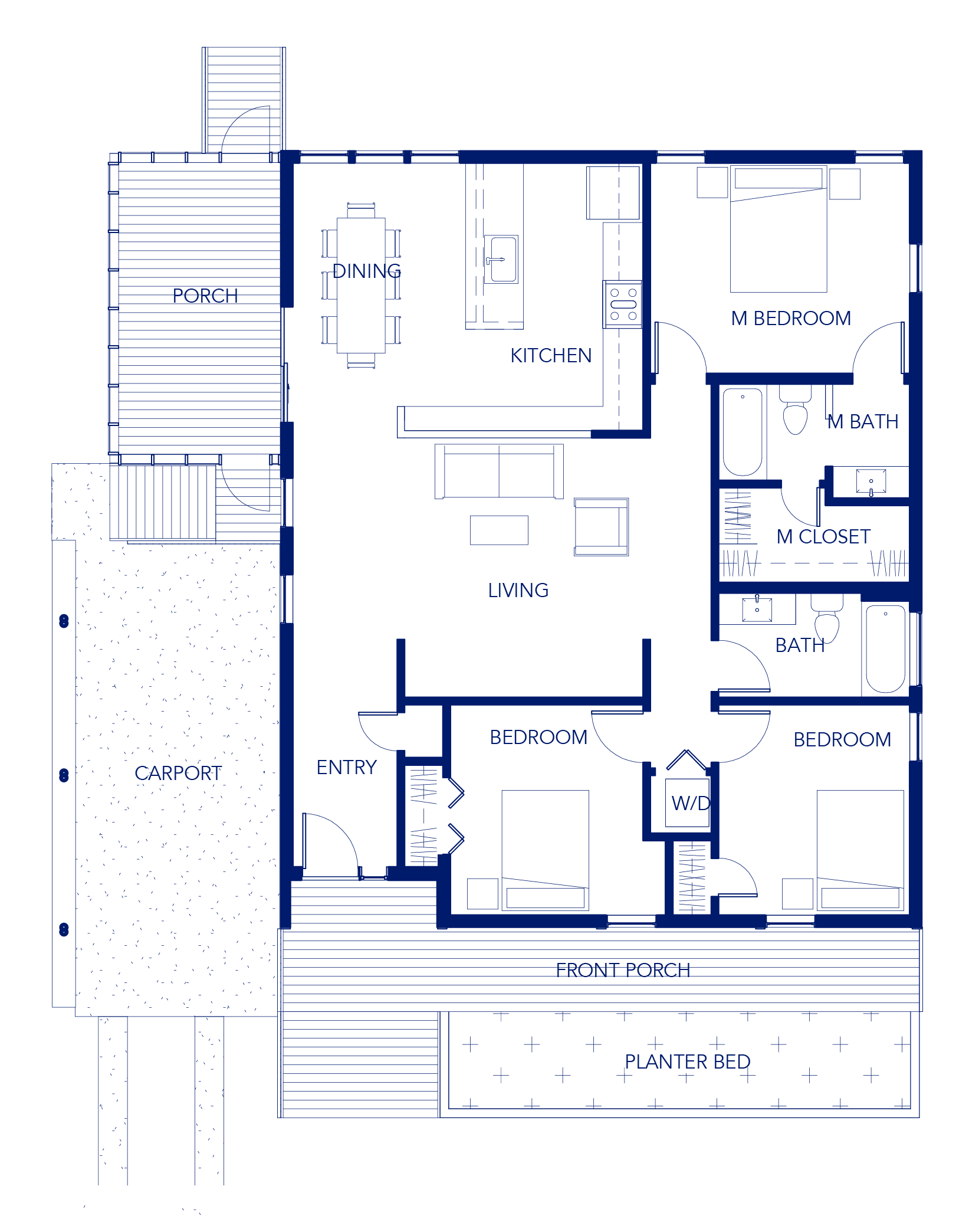Our market rate model! All of our homes are new construction, and built on site to EnergyStar 3.0 Standards. Our high-quality materials and construction will help ensure that monthly bills stay low long after you move in.